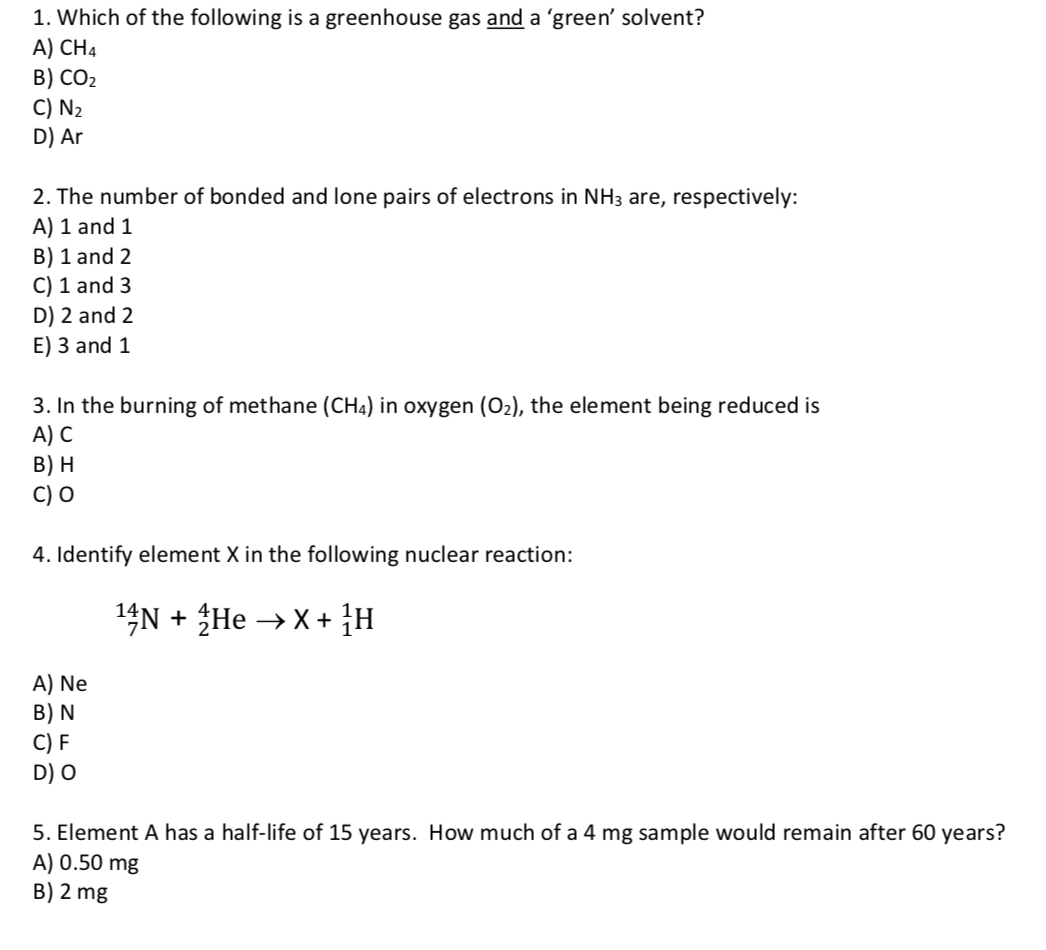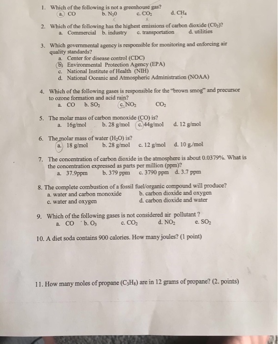 Solved 1 Which Of The Following Is A Greenhouse Gas And A Chegg Com
